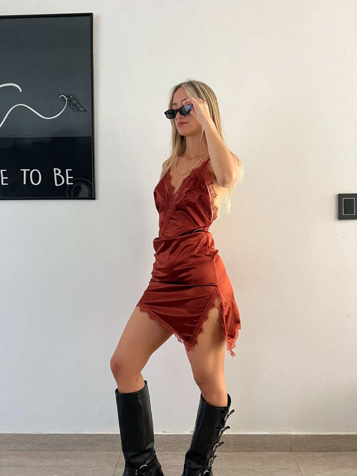 Vestido lencero de satén con puntilla en escote y ruedo. Suave, liviano y súper femenino, ideal para un look delicado y canchero.