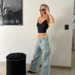 Jean wide leg con detalle desflecado en cintura y laterales, súper canchero y moderno. Fit cómodo, tiro medio–alto y denim suave que se adapta bien al cuerpo.