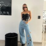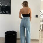 Top strapless con botones frontales y tiritas de strass colgantes que le dan un toque elegante y canchero. Ajuste cómodo y firme.